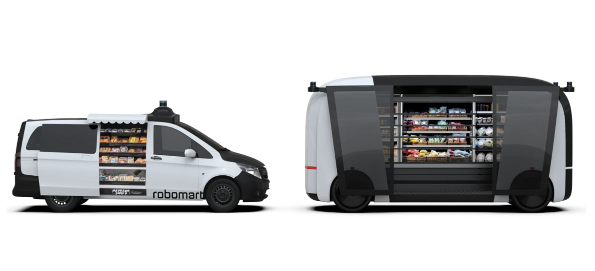 Robomartは、小売業者向けに特許取得済みの自動運転店舗を構築し、小売業者の店舗展開を支援している会社です。消費者はスマートフォンの専用アプリで簡単に配車することができ、自宅で日用品をすべて購入できる完全な対面ショッピング体験を提供します。Robomartは、2022年にユニリーバとオンデマンドデリバリー&サービスで提携し、アイスクリーム配達を行っています。