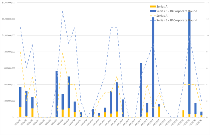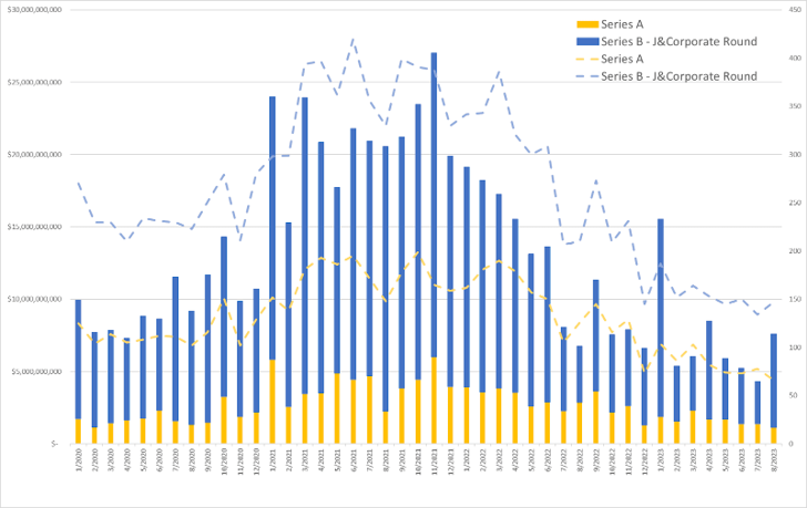 【米国VC投資額レポート: 2023年8月】シードおよびシリーズAの投資件数・投資金額ともに最低水準だが、シリーズB以降は大型調達が出始める | Monozukuri Ventures