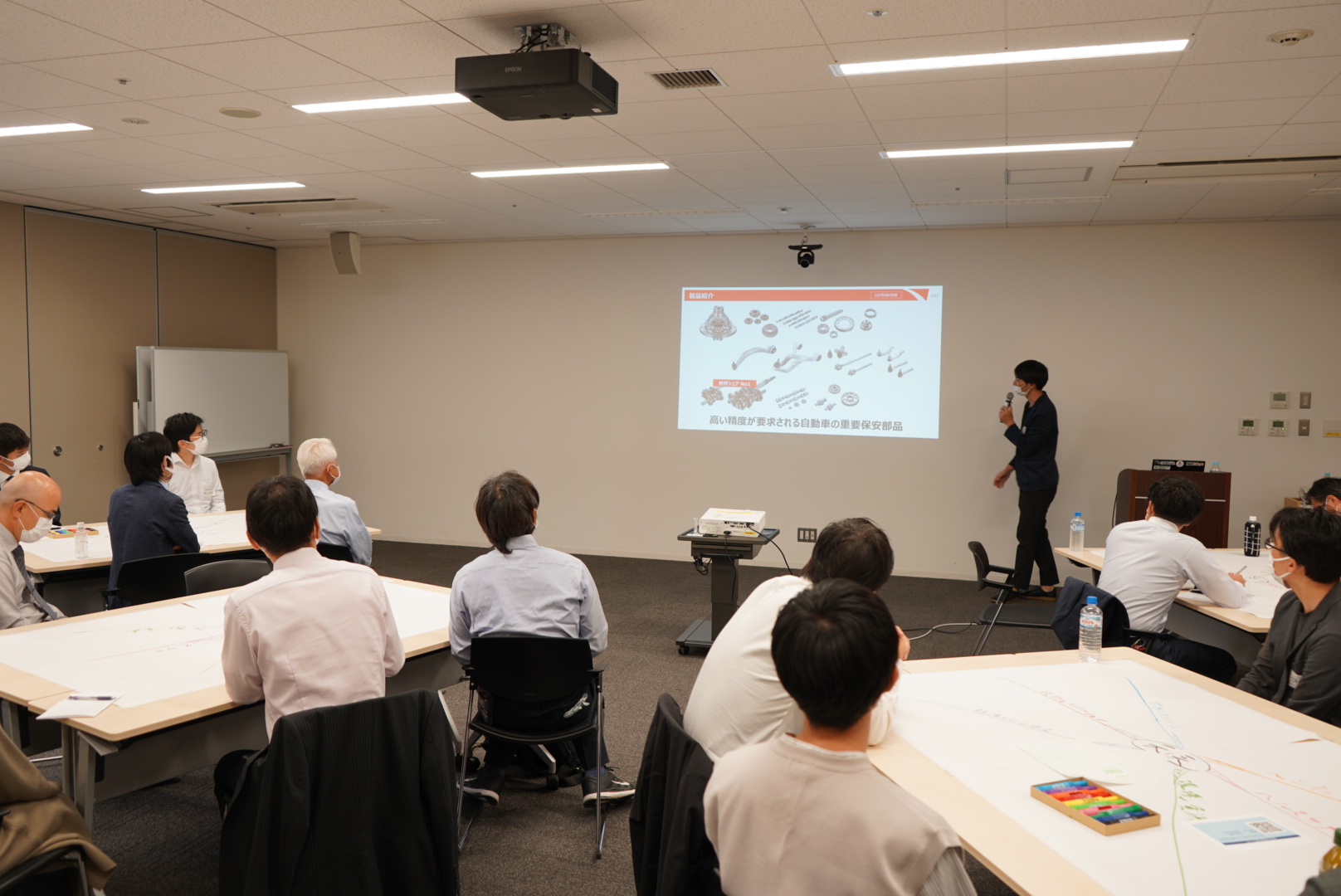 ワークショップでは、「CLUE インキュベーションプログラム凝縮版」と題したワークショップを武蔵精密工業株式会社のMUSASHi Innovation Lab CLUEの鈴木隆文氏よりご講演いただきました。数十年後の未来トレンドを考え、チームごとにマインドマップを作成し、「未来」について議論。他にも、「自分を知る」ワークショップを行いました。自分に対する問いから自分にはどのような強みがあり、どういう社会を築きたいのかなど新たな自分について気付く機会となりました。こうしたワークショップを通し、イノベーターに必要なことや未来を創るための視点について学ぶ機会をご提供いただきました。